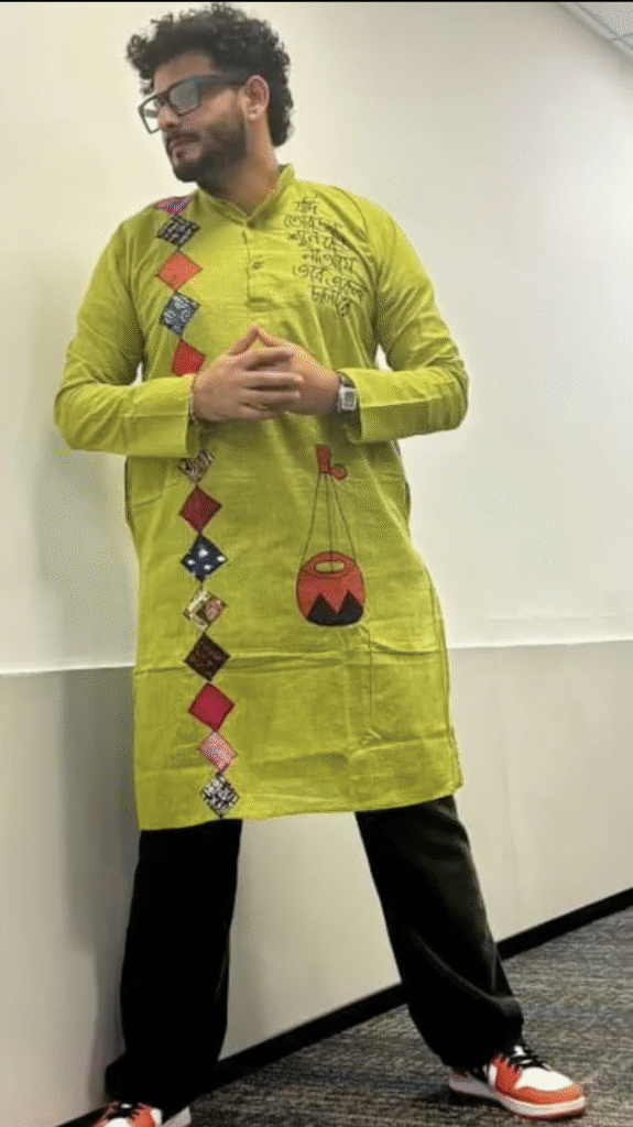 Lime green Ajrakh Kurta with Moftis – Sustainable Cotton with Handcrafted elegance.Cultural Roots Edition.